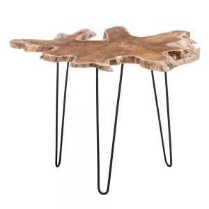 Mesa de apoio em madeira natural de Teka, cada peça é diferente e única dependendo do corte da madeira